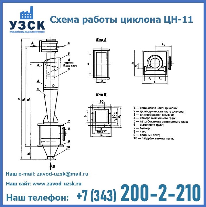 При этом ощутимой разницы в цене между универсальным и узконаправленным, подобранным в соответствии с конкретными техническими требованиями циклоном, нет. Стоимость воздухоочистительного оборудования типа циклон обусловлена маркой и толщиной стали, из которого он изготовлен, сложностью и специфичностью конструкции, наличием дополнительного оснащения (бункер, улитка и другие). При необходимости, на заводе УЗСК в Белоруссии будет изготовлен циклон по индивидуальным техническим чертежам заказчика.