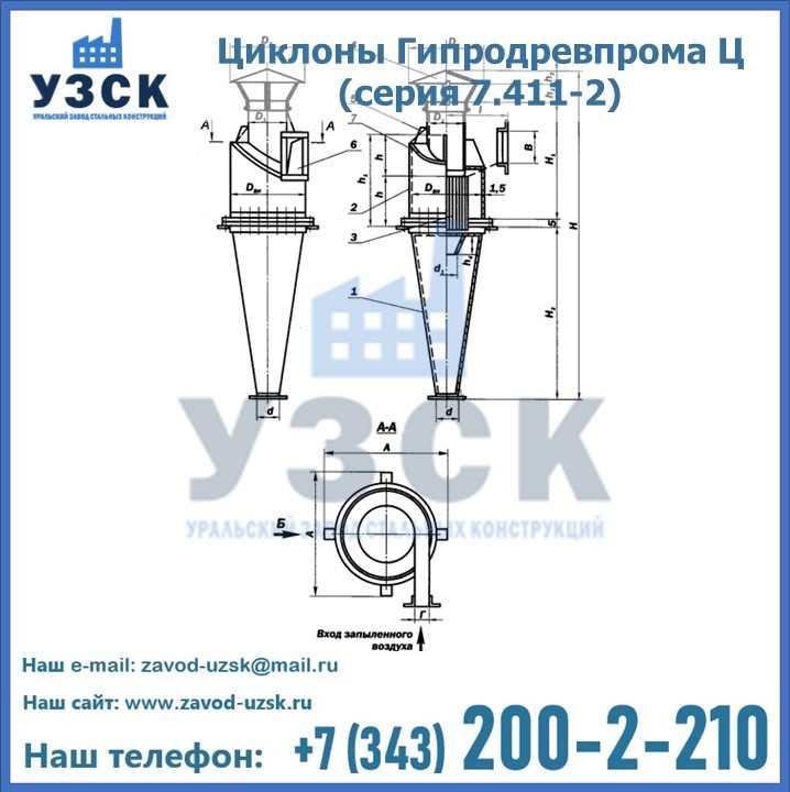 Циклоны Гипродревпрома Ц (серия 7.411-2) высокого качества можно купить в компании «УЗСК» в Белоруссии. Наши специалисты предоставят всю необходимую информацию информацию и помогут с выбором модели циклона. Подробные технические характеристики, конструкцию, параметры, ассортимент и стоимость продукции можно также найти на сайте УЗСК.