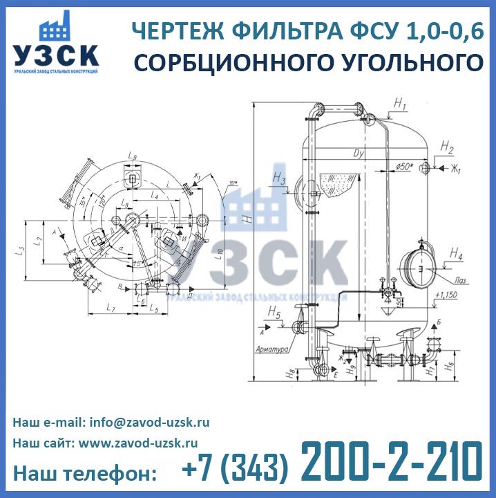 Наш завод (Уральский завод стальных конструкций) является производителем угольных фильтров, сам осуществляет изготовление и реализацию выпускаемой продукции. Приобретая фильтры ФСУ-1.0-0.6 в Белоруссии от производителя, Вы приобретаете оборудование без наценок всевозможных посредников, а также значительно экономите свое время. Фильтры ФСУ1.0-0.6 завода УЗСК – это гарантия качества, кратчайшие сроки изготовления и цена, которая Вам понравится.