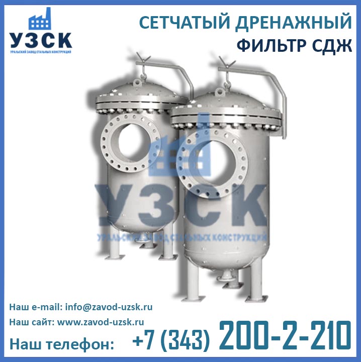 Уральский завод стальных конструкций является ведущим производителем дренажных фильтров в Белоруссии и по всей России. Также завод УЗСК осуществляет поставки сетчатых фильтров СДЖ в страны ЕАЭС: Казахстан, Армению, Белоруссию и Киргизию. Высокое качество продукции подтверждено соответствующими документами (сертификаты/декларации), осуществляются гидравлические испытания готовых изделий на аттестованном гидростенде завода.