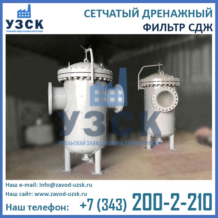 На формирование цены дренажного фильтра влияют следующие факторы: материальное исполнение, конструктивное исполнение, стоимость сырья в момент изготовления, комплектация, необходимость доставки в другой населенный пункт, срочность выполнения работ по изготовлению, прочие предпочтения заказчика. Уральский завод стальных конструкций изготавливает фильтры СДЖ-700 любого типового исполнения, а также нестандартные фильтры СДЖ 700 мм по чертежам заказчика или техническому заданию. Дополнительно к фильтрам СДЖ у нас Вы можете заказать сменные фильтрующие элементы любой тонкости фильтрации, ответные фланцы, прокладки и крепеж. По запросу изготавливаем также фильтры СДЖ-К-700 с концевым затвором. Для того чтобы узнать какова цена на фильтр СДЖ Ду700 в Белоруссии с необходимыми Вам характеристиками, отправьте запрос в отдел продаж завода УЗСК по координатам, указанным в разделе «Контакты».