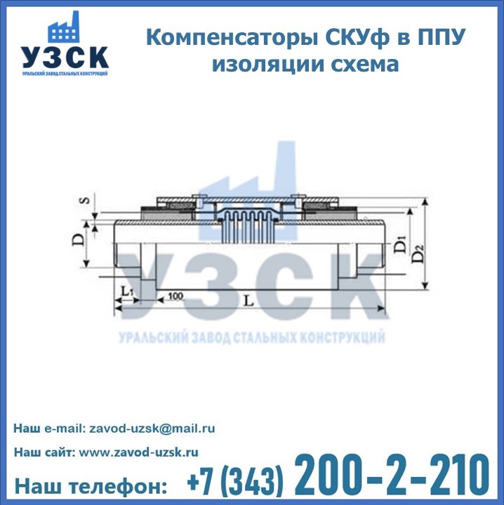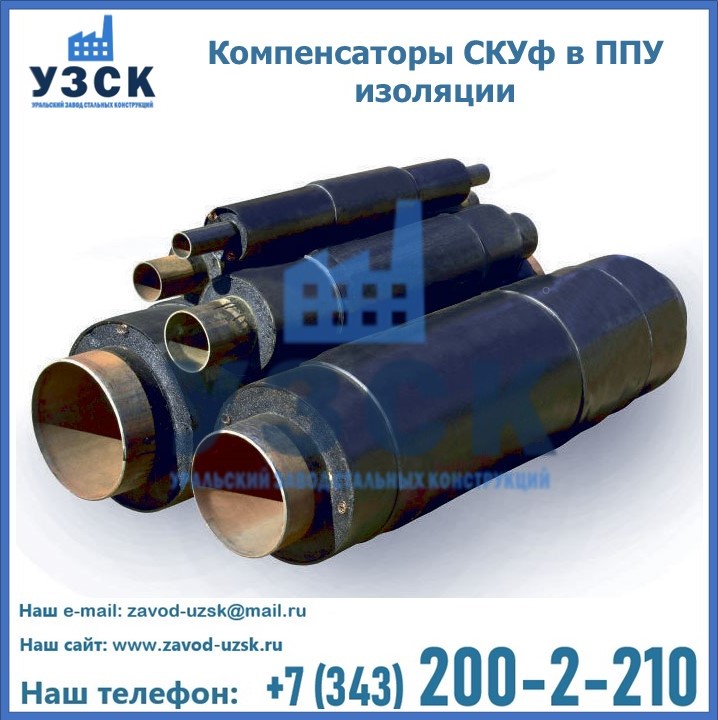Если трубы для прокладки усилены теплоизоляцией ППУ, то на них допустимо устанавливать только cильфонный компенсатор СКУф в ППУ с такими же размерами теплоизоляционного слоя. На данный момент, такие устройства считаются одними из наиболее надежных, эффективных и долговечных элементов, способных обеспечить бесперебойную работу трубопроводов. На заводе «УЗСК» вы можете купить СКУф ППУ и другие компенсаторы по приемлемой цене, от надежных производителей. УЗСК осуществляет поставки сильфонных компенсаторов СКУ в ППУ любых типоразмеров. Наше предприятие поставляет и производит оборудование, имеющее длительную гарантию и большой эксплуатационный ресурс. Если требуется изготовить нестандартное изделие, то такой вариант выполнения заказа тоже предусмотрен, так как предприятие имеет собственные производственные площади и надежных поставщиков. На все оборудование имеются чертежи и прочая техническая документация. Чтобы заказать сильфонный узел СКУф в ППУ изоляции в Белоруссии необходимо направить запрос через форму онлайн-заказа на сайте или связаться с нашими специалистами по телефонам, указанным в разделе «КОНТАКТЫ .