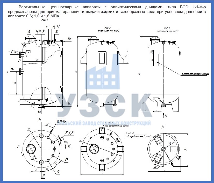 Бак-мерник ВЭЭ серной кислоты представляет металлический цилиндр с плоским или коническим дном, закрытый сверху съемной крышкой с воздушником. На корпусе сосуда выполнены штуцеры для подвода и отвода кислоты, переливная трубка и уровнемер. Расстояние между переливным и сливным отверстием выполняется точно, обеспечивая постоянный объем одной порции агента.