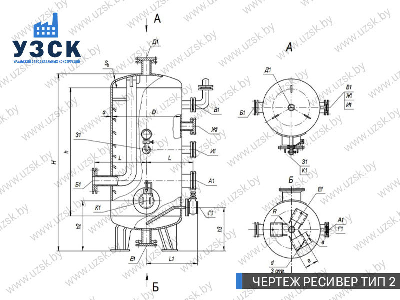 Ресивер высокого давления — это специализированное оборудование, разработанное для накопления и хранения воздуха или газа под давлением, а также для подачи рабочей среды на технологические линии предприятий. Завод «УЗСК» осуществляет изготовление газовых и воздушных ресиверов (воздухосборников) любой сложности. Мы предлагаем самые выгодные цены на ресиверы из углеродистой стали, ресиверы из легированной стали и ресиверы из нержавеющей стали в Белоруссии.