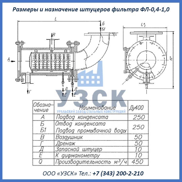 Основные характеристики фильтров ФЛ Ду 400 мм