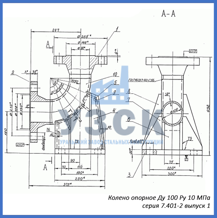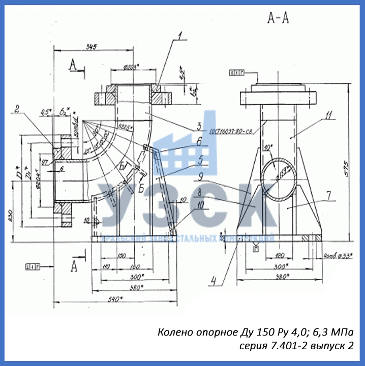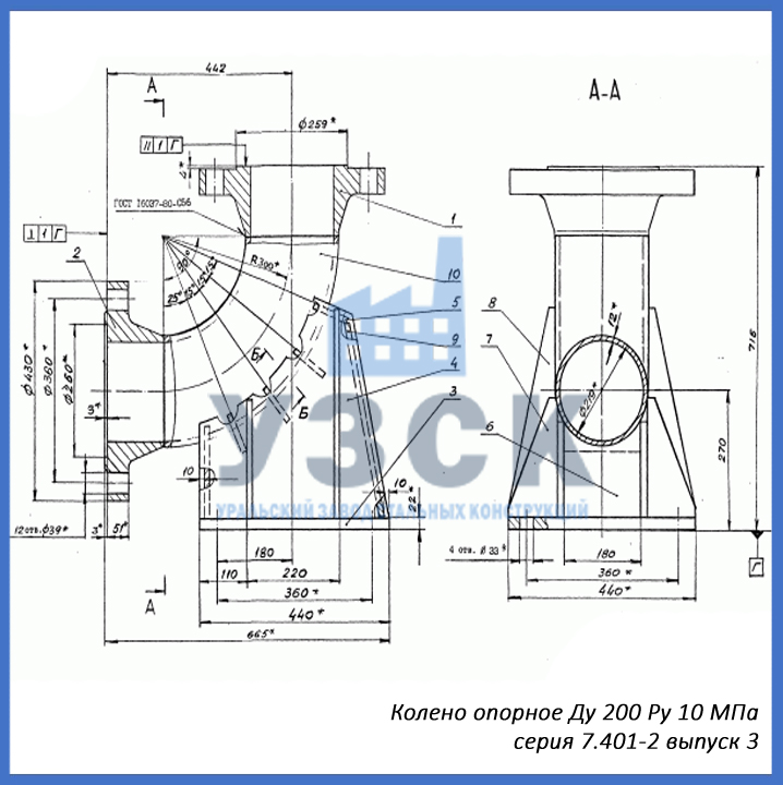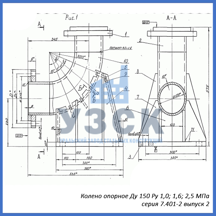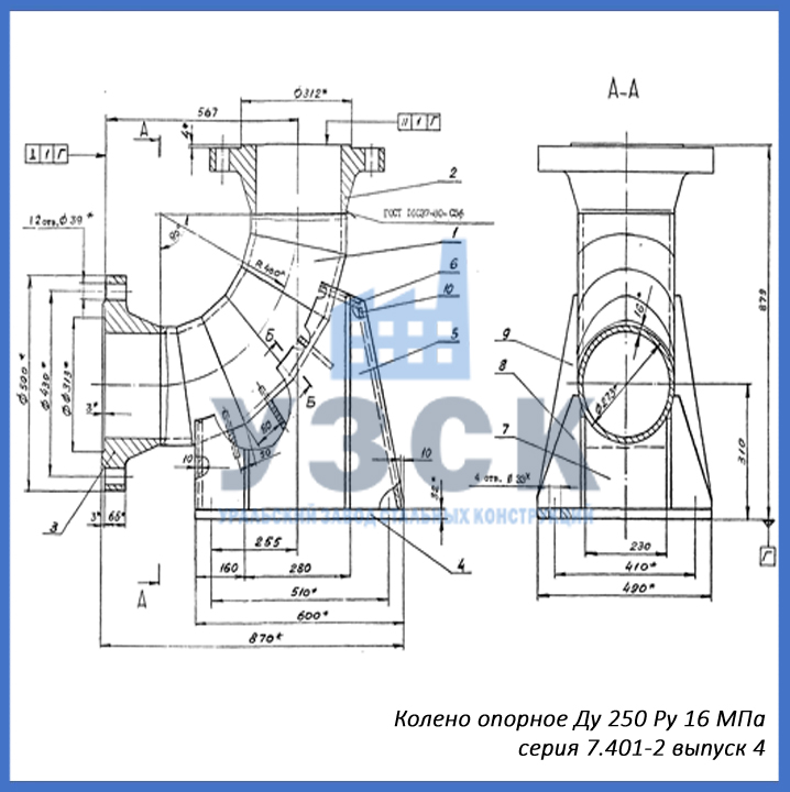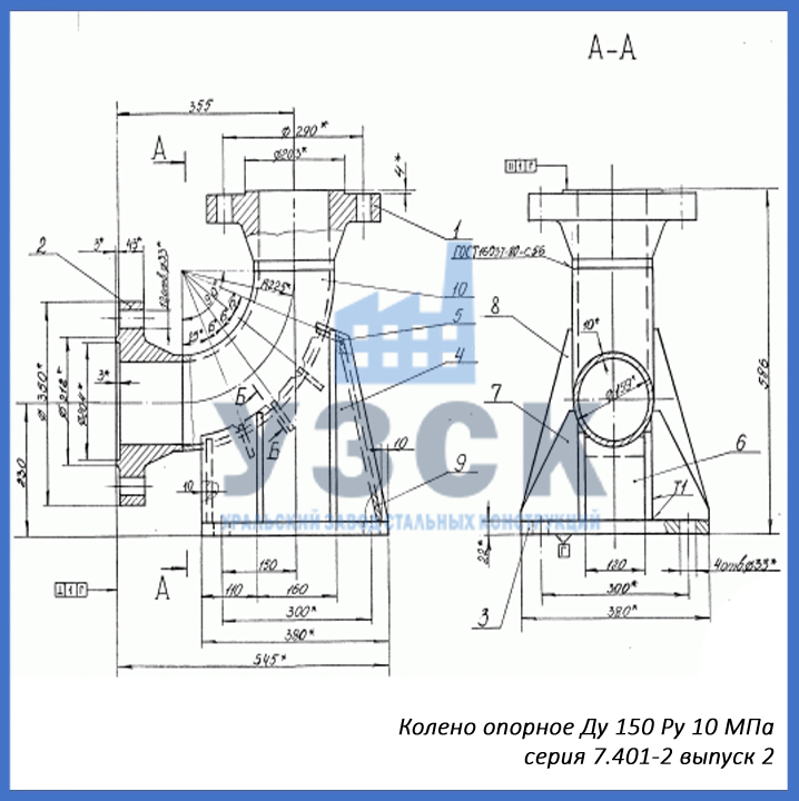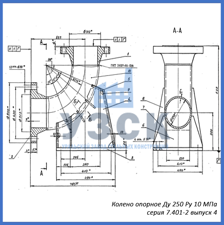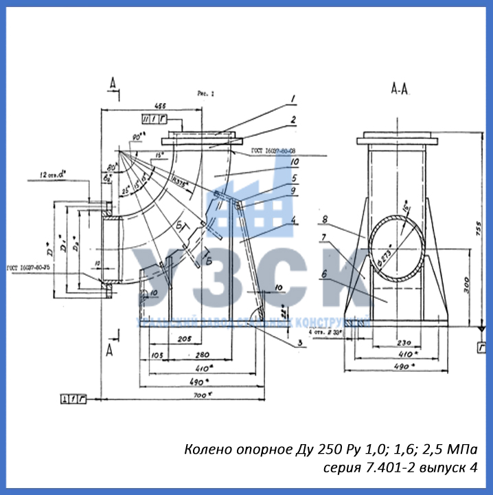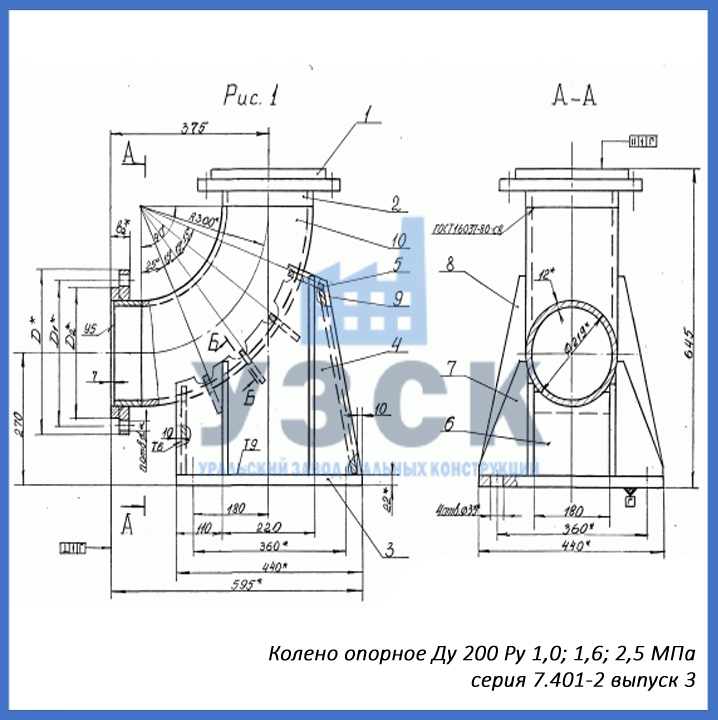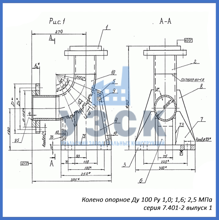 Колено опорное Ру 10,0 серия 7.401-2 выпуск 7.