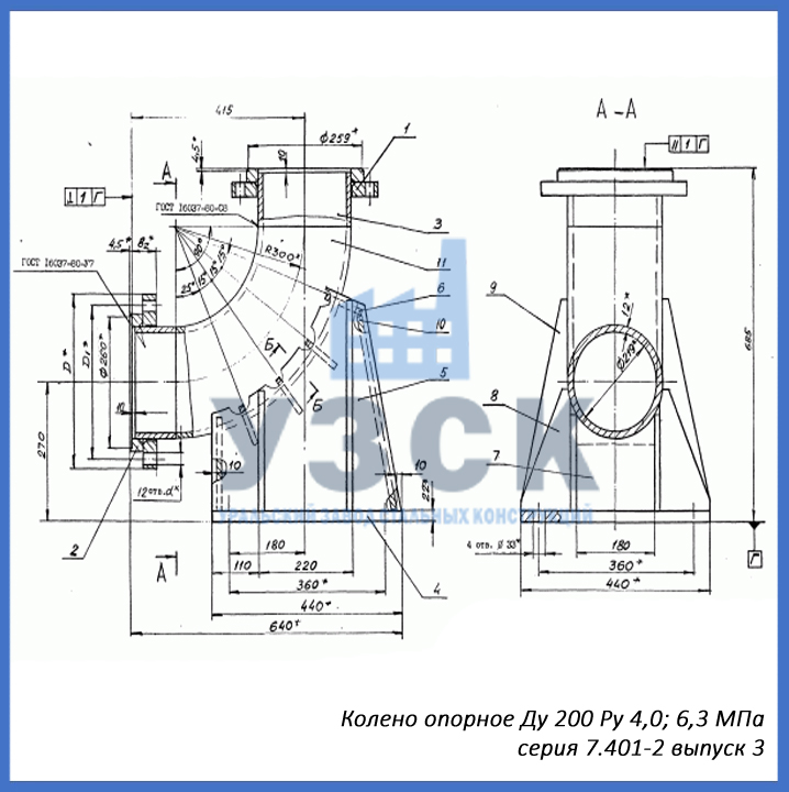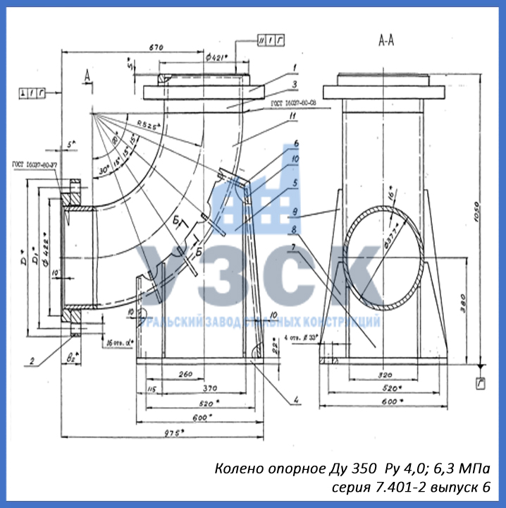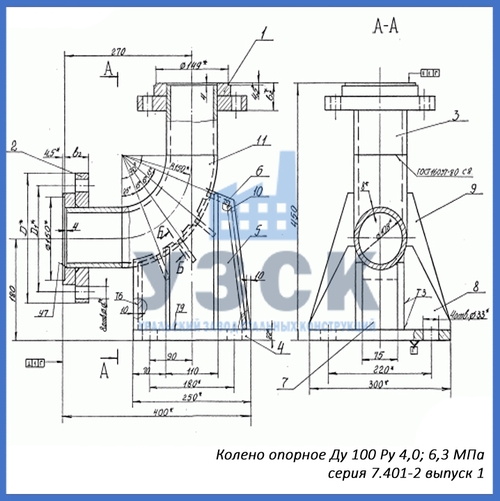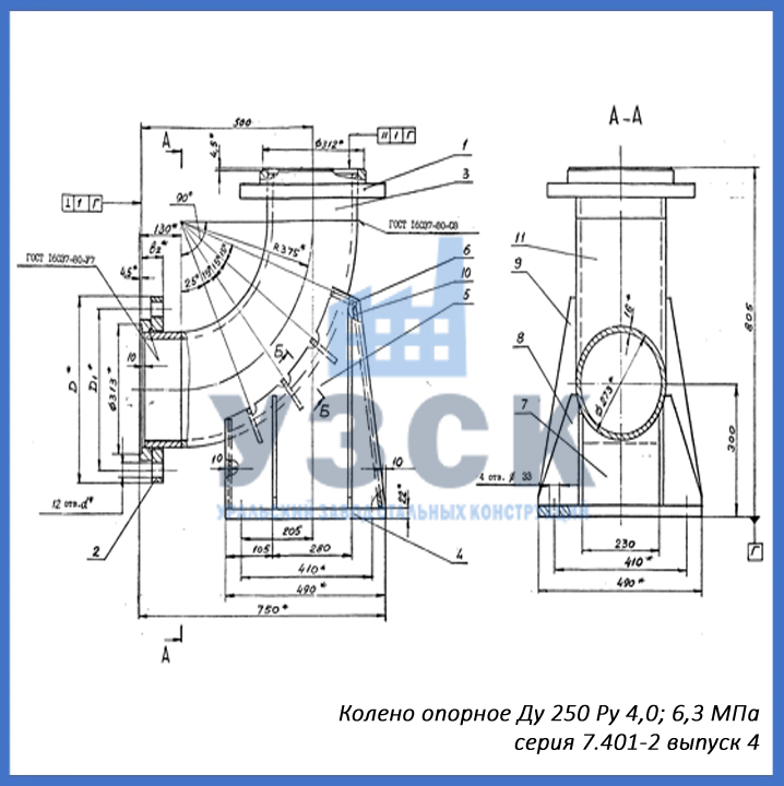 Колено опорное Ру 4,0; 6,3 серия 7.401-2 выпуск 7.