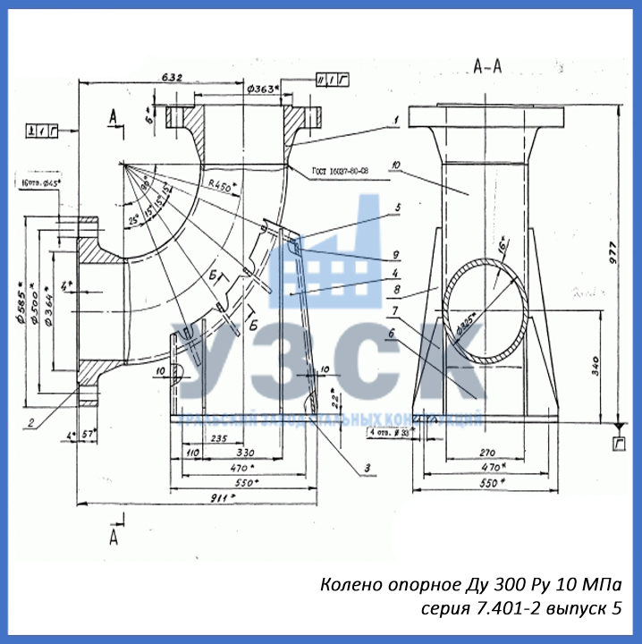 Колено опорное Ру 10,0 серия 7.401-2 выпуск 5.
