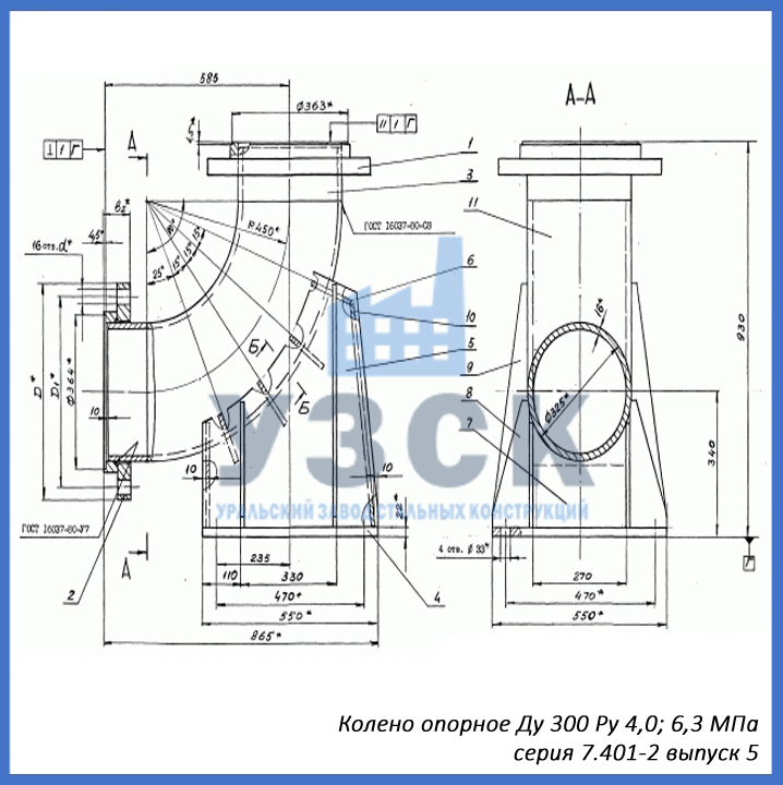 Колено опорное Ру 16,0 серия 7.401-2 выпуск 4.