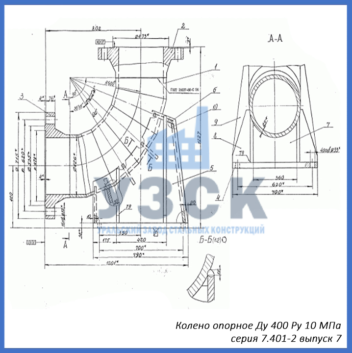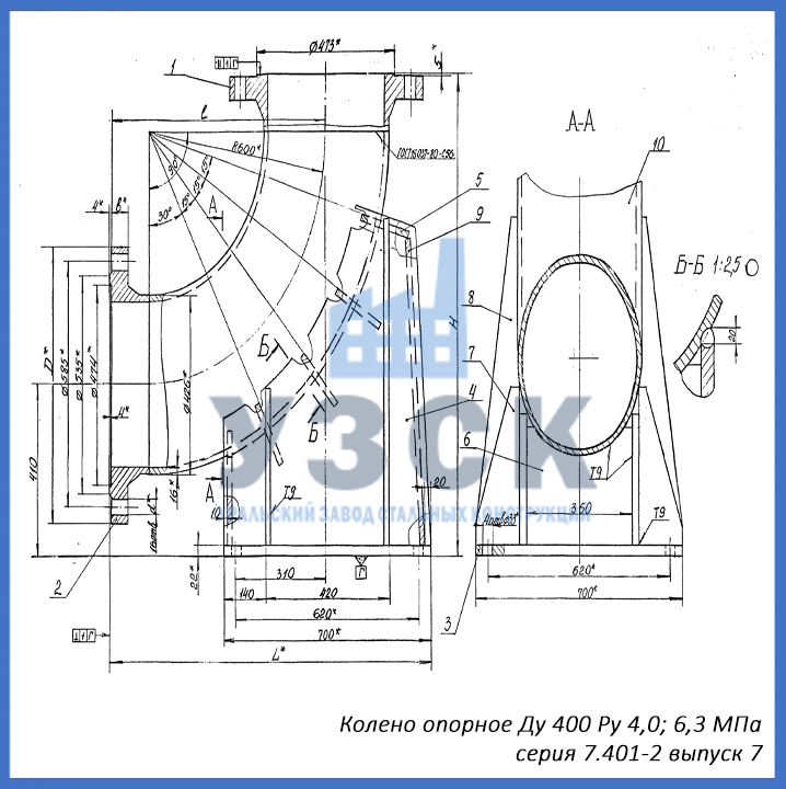 - опорное колено серия 7.401-2 выпуск 7 Ду 400 мм.
