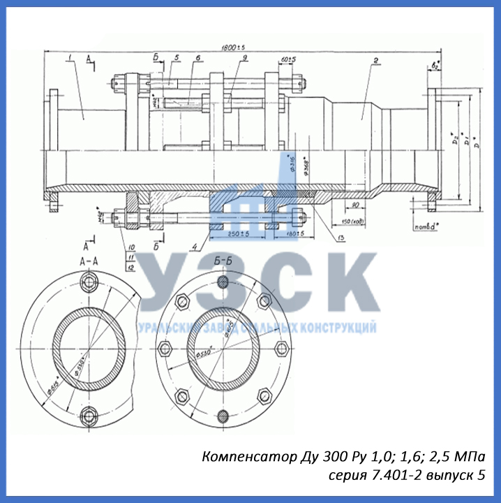 Выпуск 2 серии 7.401-2 представлен компенсаторами сальниковыми с условным диаметром Ду 300 мм, рассчитанными на рабочее давление от Ру 1,0 МПа до Ру 16 МПа.