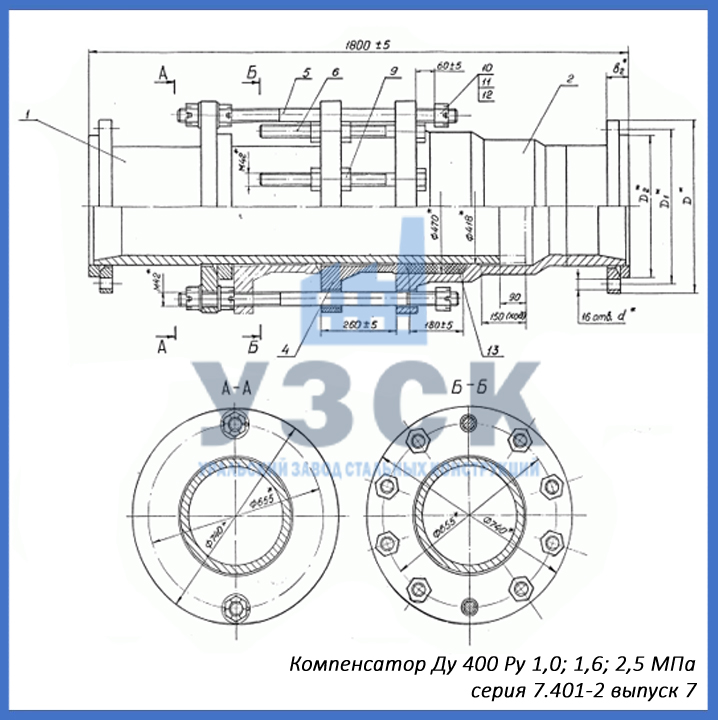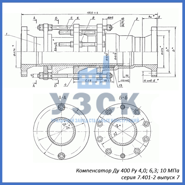 Серия 7.401-2 выпуск 7 разработана для трубопроводных систем нефтедобывающей промышленности диаметром Ду 400 мм с рабочим давлением от 1,0 до 10 МПа. В выпуске представлены сальниковые компенсаторы Ду 400 Ру 1,0; 1,6; 2,5; 4,0; 6,3; 10 МПа.